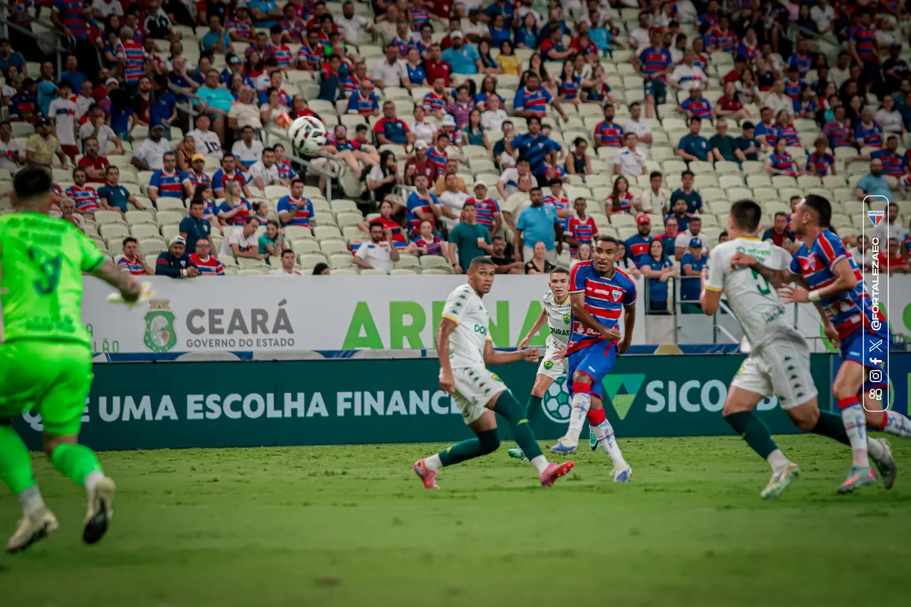 Aos 22, com o jogo reiniciado, Lucas Crispim arriscou de longe e mandou por cima do travessão. E na última e melhor chance do Fortaleza no jogo, aos 30, Crispim bateu falta e Miritello cabeceou no meio do gol para defesa de Carné.