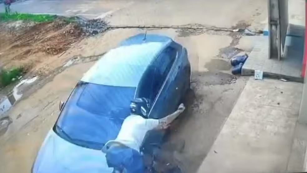Ao perceberem que o motociclista conseguiu fugir, o motorista do carro dá ré para tentar alcançá-lo. Um dos suspeitos, que estava no banco de trás, abre a porta e dispara em direção à vítima. O tiroteio continua pela rua, mas o motociclista consegue escapar.